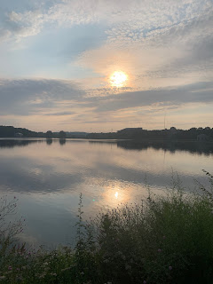 We got up early on Saturday morning. The weather forecast called for high humidity and high temps and severe thunderstorms later in the day. It was warm and humid when we set out for our 4 miles. Tom said, "Shall we go up the hill again to add to the miles from around the Reservoir?"