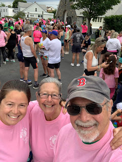 This was the first race that Ruth Anne, Tom and I shared since the 2018 Bermuda Half Marathon. It was exhilarating to be together AND to be in the middle of the pack where we saw walkers and runners in front of us and walkers behind us. I asked two women next to us if they'd done the race before. When they said yes, I asked where the turnaround was as we were approaching the 1 mile mark. There were volunteers up ahead directing the walkers to a left turn. She reassured us that we wouldn't get lost. I said to Tom and Ruth Anne, "Of course we won't because I am able to keep up with the pack!"